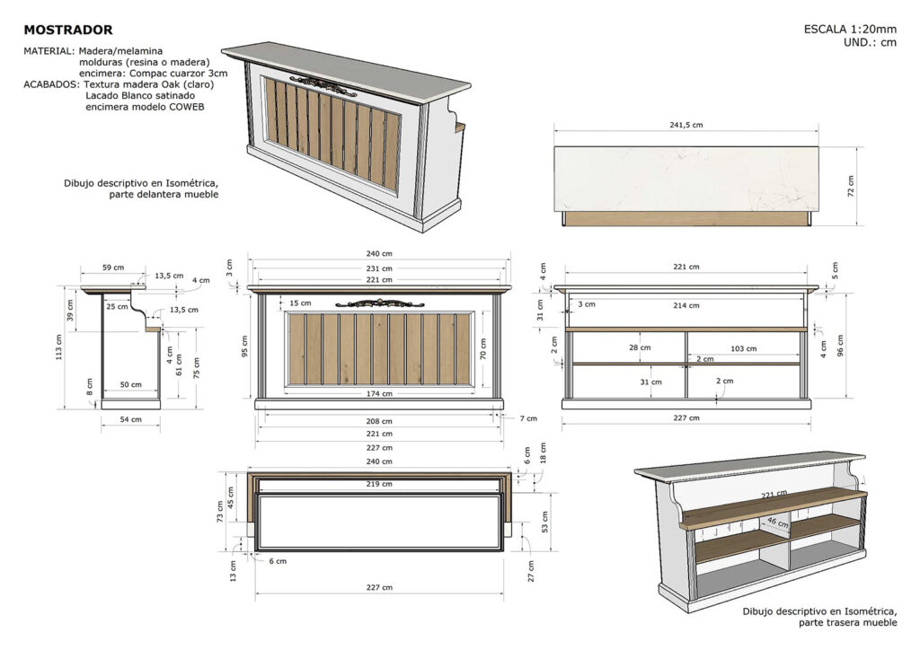 El trabajo es bastante amplio en planos técnicos y documentación para mostrarlo completo. Pero si podemos ver de forma realista el resultado final en imágenes de escenas del diseño.