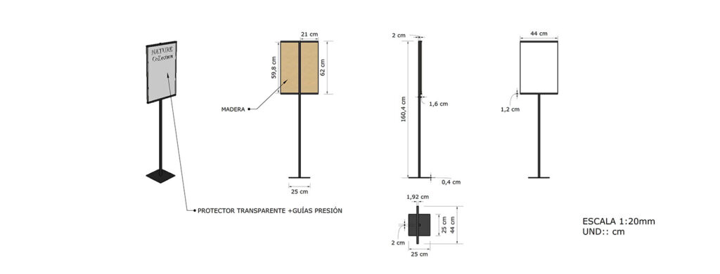 Se diseña la rotulación por zonas, cartelería, soportes de pared y colgantes para producto.